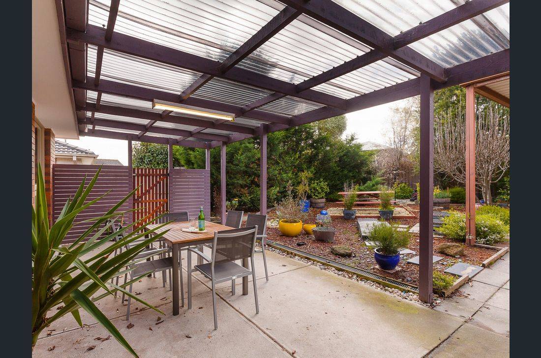 The property’s back yard has been set up for outdoor entertaining, with a pergola area accessible from the dining room/kitchen, and power and lighting installed. There’s a garden that kids will love to explore, with a tool shed out of sight up the back, and plenty of trees for shade in summer.