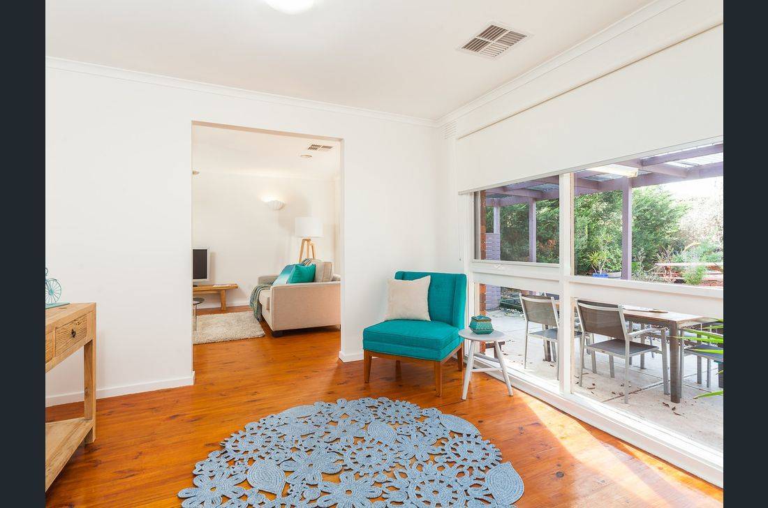 To the left of the home’s bright entryway is a lounge room with warm polished floorboards, or venture right to the spacious slate-tiled kitchen and dining area. Connecting these two main living spaces is an open room that’s perfect as a family study or sunroom. The kitchen has been updated and provides plenty of cupboards, a large pantry and useful bench space.