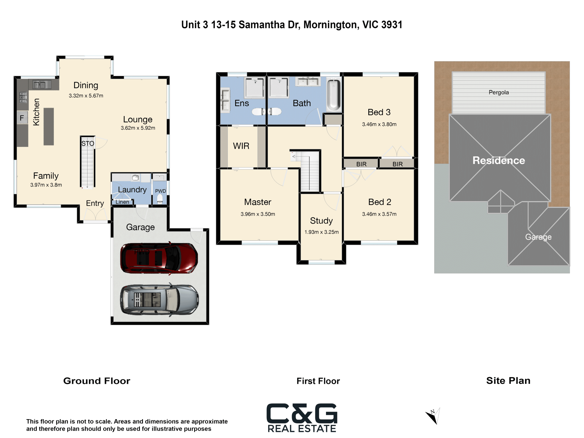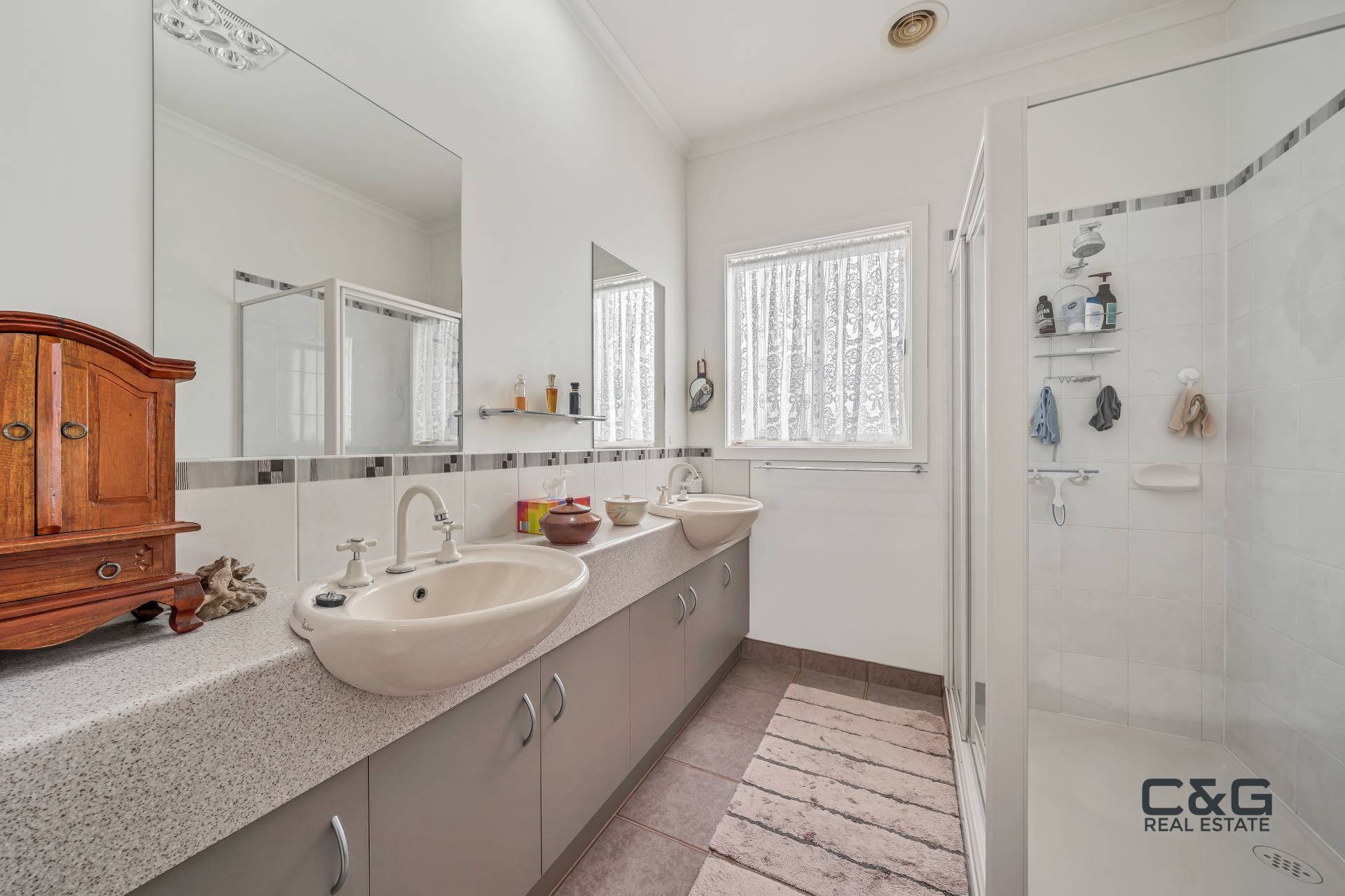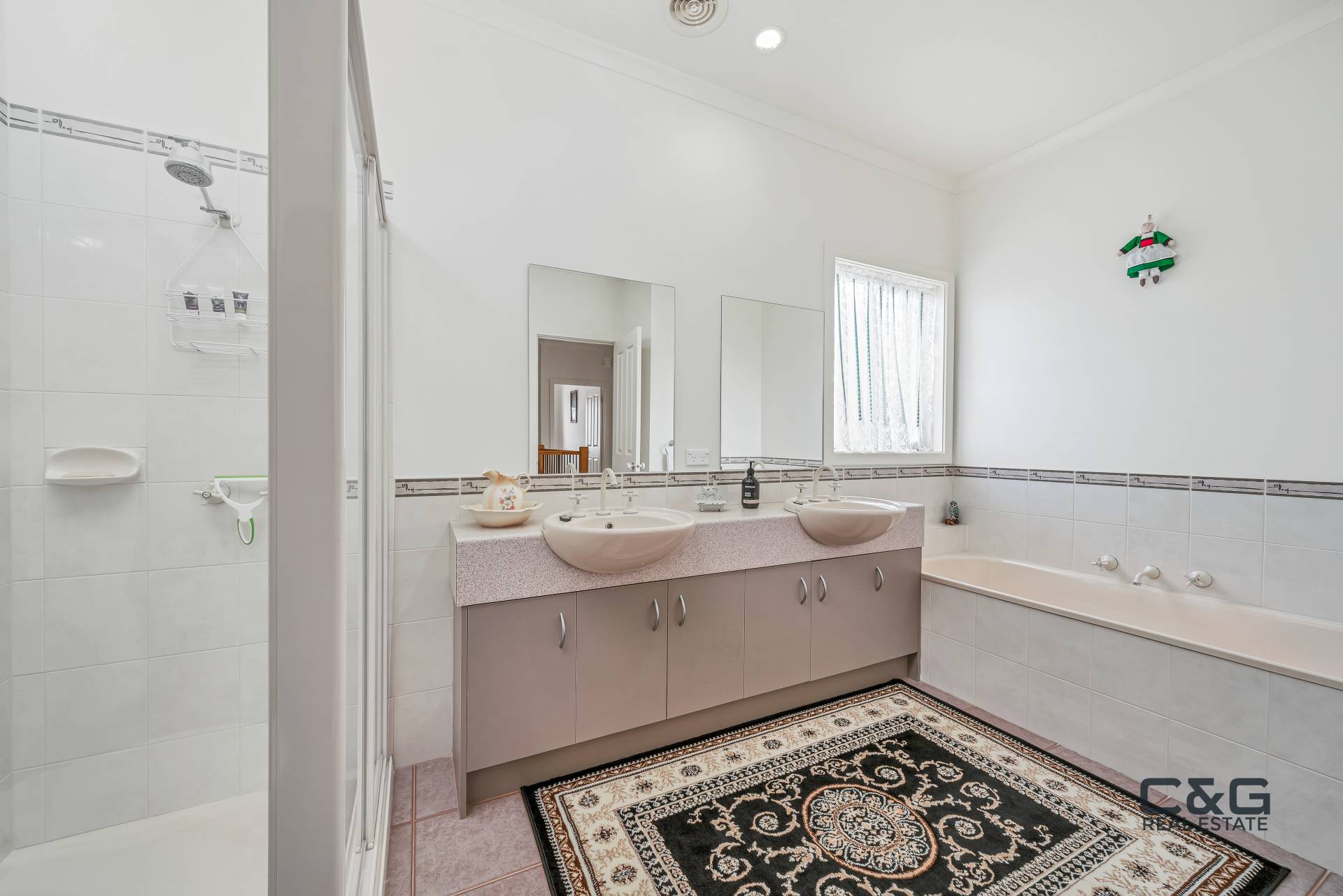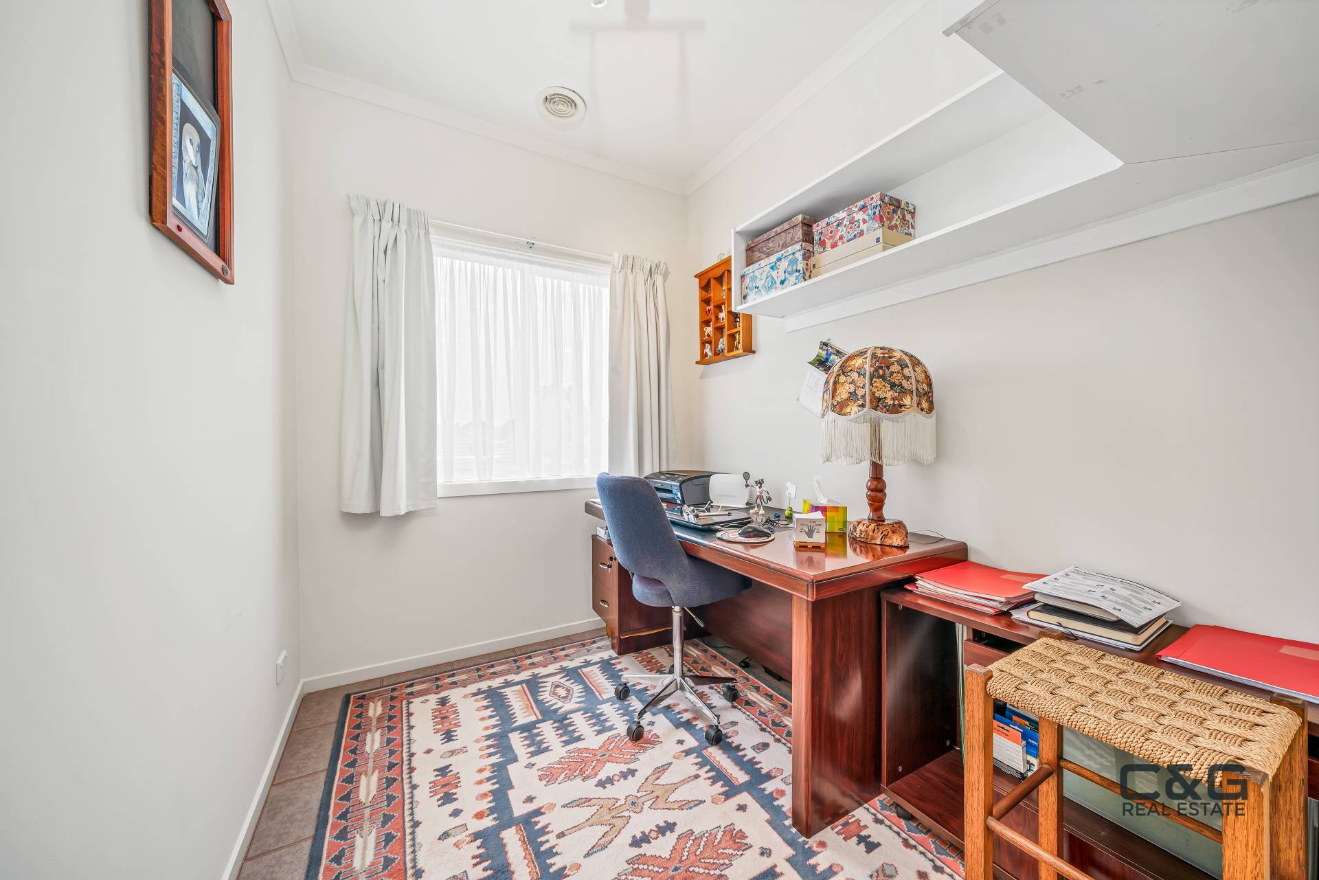 Engineered timber floors add warmth, sliding doors to the fabulous courtyard garden with low-maintenance borders. A full-width master bedroom sits upstairs with a luxe dual-basin ensuite and walk-in robe, together with two further spacious bedrooms with built-in robes. A family bathroom with walk-in shower adds further modern convenience upstairs, along with a dedicated study to make working from home a breeze.