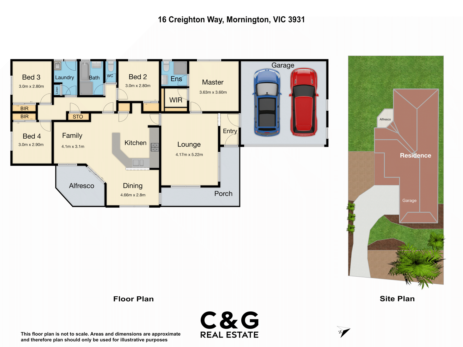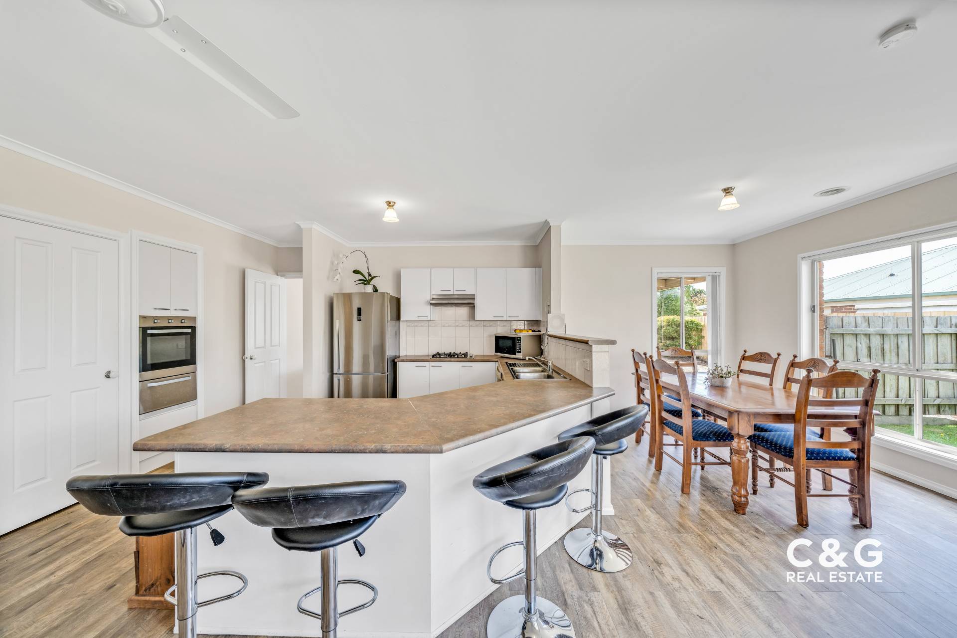 Comprising of a fantastic front living room, master bedroom boasting a sparkling ensuite, walk in robe. The 3 other generous sized bedrooms, all with BIR, are located in their own wing of the home and are serviced by the central family bathroom, separate toilet and laundry. At the centre of the home is a well-appointed kitchen with stainless steel appliances, tiled splash back, dishwasher, more than enough cabinetry and huge amount of bench space all overlooking the living/meals areas.